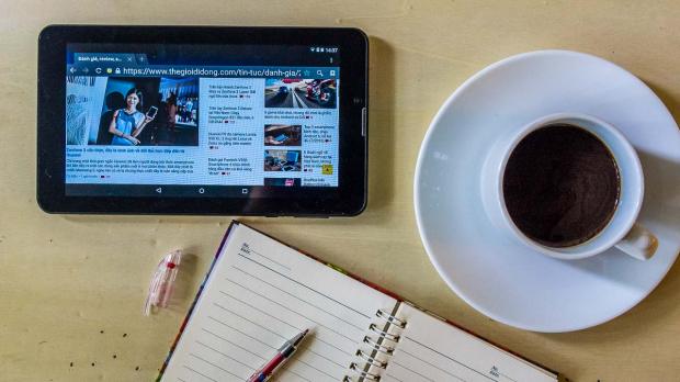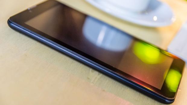 Ngoài ra, mặt lưng này còn được vát cong về các cạnh kết hợp với 4 góc được bo tròn nên cảm giác cầm trên tay Tab 7C khá thoải mái.