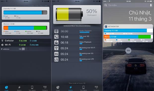 ActMonitor cung cấp đầy đủ thông tin để so sánh với các thiết bị khác. Ngoài ra ứng dụng còn ước tính thời lượng pin và tuổi thọ còn lại của thiết bị.