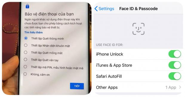 Quay lại iPhone X mình xem thì Apple hầu như muốn người dùng chỉ dùng FaceID và Passcode như là giải pháp dự phòng bắt buộc khi mà FaceID không nhận ra. Rõ ràng cách tiếp cận của Samsung và Apple hoàn toàn khác nhau và nhắm đến những người dùng có nhu cầu khác nhau.