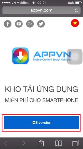Các bạn mở trình duyệt Safari và truy cập vào trang web: Appvn.com, sau đó bấm vào iOS version.