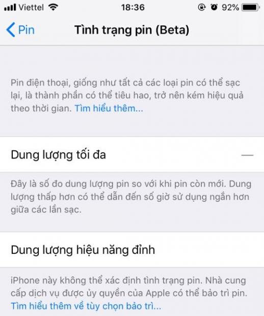 Hầu hết người dùng đều xác nhận việc họ không thể kiểm tra tình trạng pin là do máy của họ đã được thay pin từ trước. Như vậy đây cũng là một cách để bạn có thể kiểm tra viên pin trong chiếc iPhone có được thay thế chính hãng hay không.