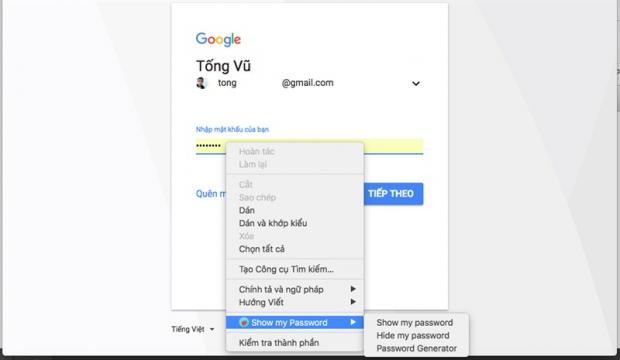 Cách sử dụng cũng khá đơn giản, bạn nhấp chuột phải vào các kí tự mã hoá mật khẩu, sau đó chọn dòng Show my Password để kiểm tra nội dung mật khẩu.