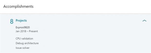 Vi xử lý Exynos 9820 được cho là được nghiên cứu, phát triển từ tháng 1 năm nay. Ngoài dự án trên thì còn có các dự án khác trong danh sách bị rò rỉ như modem 5G và Exynos 9810.