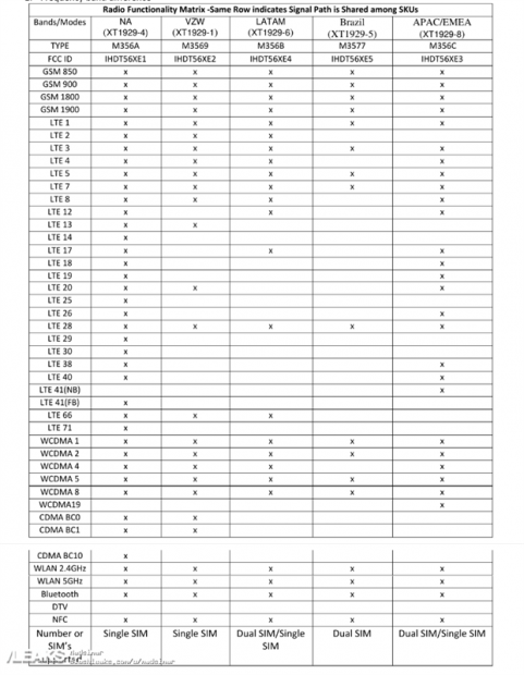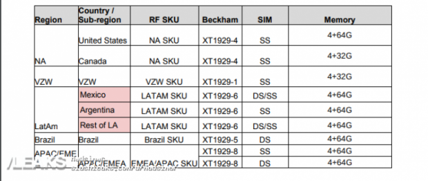 Châu Âu và Trung Đông sẽ có số model là XT1929-8 với RAM 4 GB và ROM 64 GB. Một số quốc gia sẽ bán model SIM kép, hoặc SIM đơn tùy thị trường.