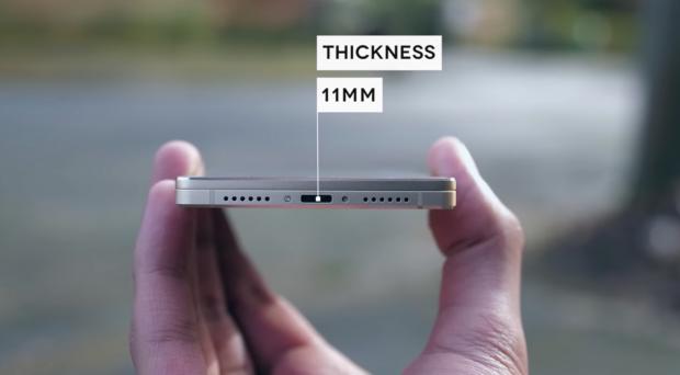Do có thiết kế màn hình trượt, nên DOOGEE Mix 4 khá dày, lên đến 11mm, nhưng do màn hình chiếm đến 97% mặt trước nên dù có kích thước đến 5.99 inch, Mix 4 vẫn rất gọn gàng, có thể nhét túi dễ dàng.