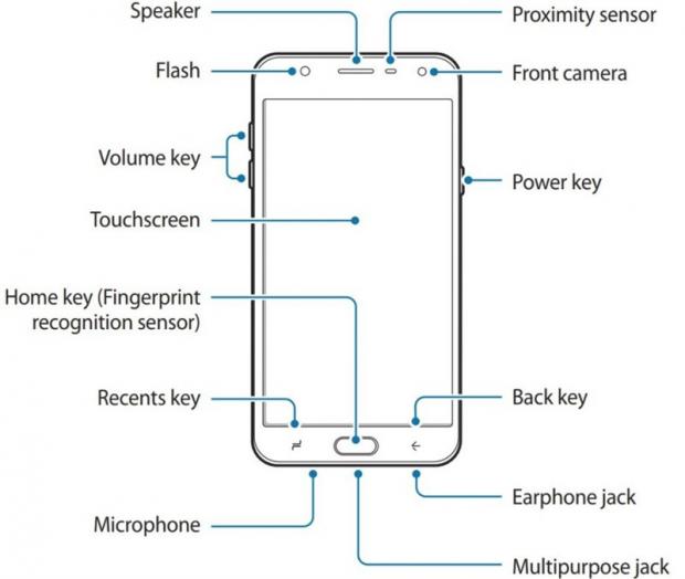 Cụ thể hơn, mặt trước của Samsung Galaxy J7 (2018) sẽ có camera selfie, đèn flash LED, cảm biến khoảng cách và loa. Phím nguồn được bố trí ở bên cạnh phải, còn nút âm lượng đặt bên cạnh trái.