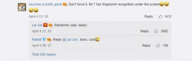 Xiaomi sẽ tiến hành tích hợp công nghệ này cho chiếc Xiaomi Mi 7 sắp được ra mắt trong năm nay. Thông tin này hoàn toàn đáng tin cậy khi chính CEO của hãng là ông Lei Jun đã xác nhận. Cụ thể, một bài đăng về những tấm hình 'phẫu thuật' Xiaomi Mi Mix 2 trên trang mạng xã hội Weibo, một người đã đùa rằng cảm biến vân tay dưới màn hình sẽ có trên Mi 7, không lâu sau đó vị CEO của Xiaomi xác nhận bằng cách trả lời bình luận này.