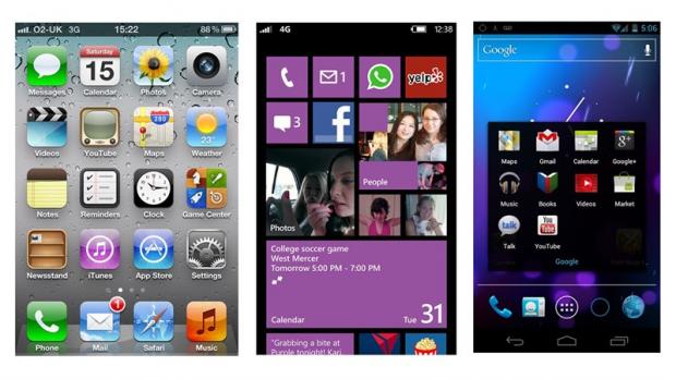 Giao diện: iOS 6 - Windows Phone 8 - Android 4.1 cùng thời điểm
