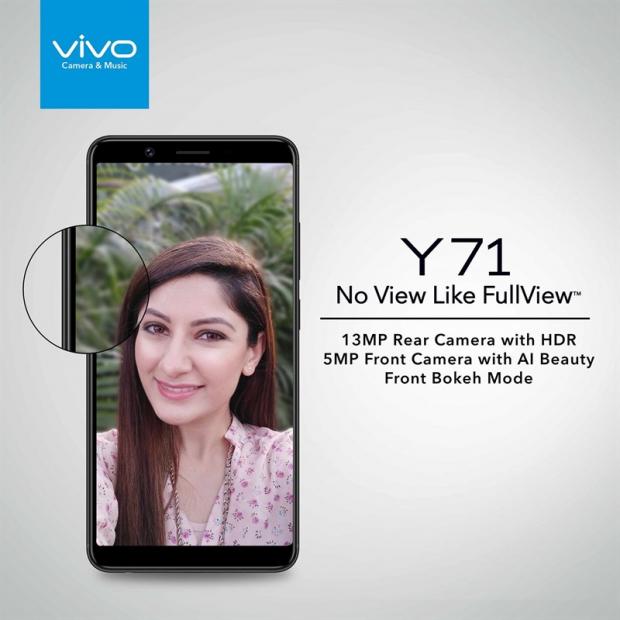 Bên cạnh đó, nội dung poster còn đề cập đến thông số camera của Vivo Y71, bao gồm: Camera selfie 5 MP tích hợp chế độ làm đẹp bằng trí tuệ nhân tạo AI, chế độ chụp hiệu ứng Bokeh chuyên nghiệp, camera sau có độ phân giải 13 MP hỗ trợ chụp ảnh HDR.