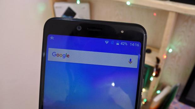 Mặt trước máy chính là màn hình tràn viền 6 inch với tỉ lệ 18:9 và độ phân giải HD+. Tuy nhiên thì cạnh trên và dưới có trông có vẻ hơi dày, cảm giác không giống như hình quảng cáo cho lắm.