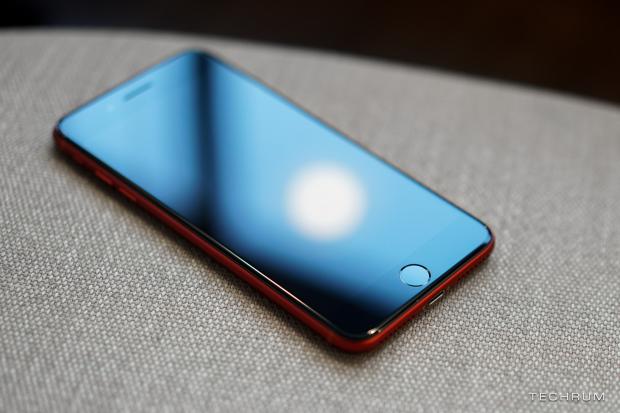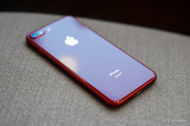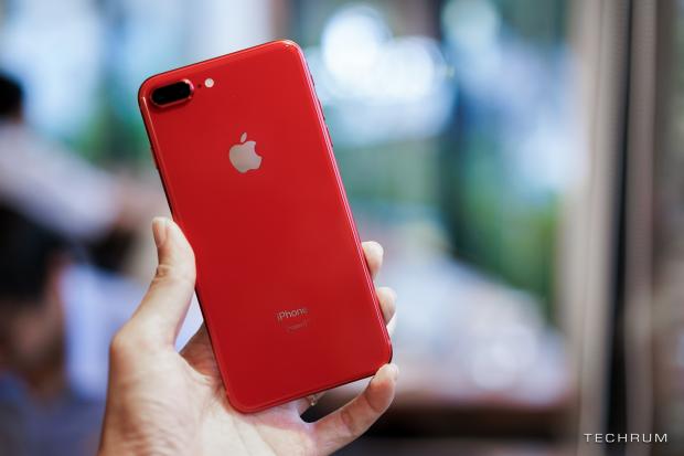 Phần logo Apple và chữ 'iPhone' bên dưới được làm màu bạc đã tạo nên sự tương phản, qua đó tăng thêm vẻ cuốn hút cho chiếc iPhone 8 Plus RED này.
