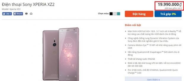 Cụ thể, hệ thống cửa hàng này đề cập giá bán chính thức của Xperia XZ2 khi lên kệ chính thức tại nước ta là 19.99 triệu đồng.