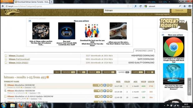 Thật không khó để nhìn thấy một giao diện tải file torrent như thế này, ngay cả lúc người dùng đã cài các chương trình chặn quảng cáo. Thậm chí khi vào cửa sổ để tải file, trang web cũng đặt nhiều quảng cáo để 'dụ' người dùng click vào.