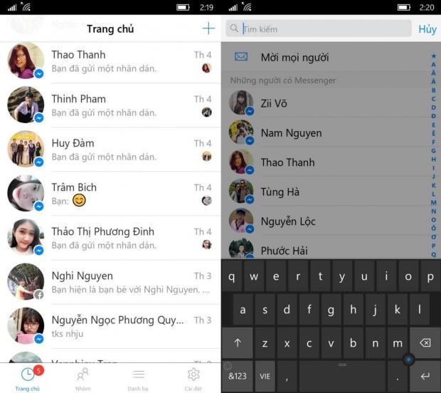 Đầu tiên, dễ nhận thấy nhất là tốc độ khởi động cũng như phản hồi của Messenger đã nhanh hơn đáng kể so với trước. Điều này cho thấy Facebook đang cố gắng 'chuộc lỗi' cho sự chậm trễ của mình bằng cách cập nhật ứng dụng thường xuyên hơn để mang đến trải nghiệm tốt nhất cho người dùng Windows Phone.