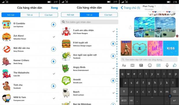 Bên cạnh đó, số lượng sticker đã được bổ sung thêm đầy đủ hơn sau khi bị người dùng than phiền là khá thiếu so với Messenger trên Android và iOS. Để tải về các bạn vào cửa hàng nhãn dán > bấm vào sticker mới > Bấm icon download.
