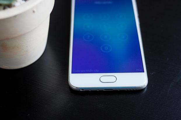 Mặt trước của máy được bảo vệ bởi một tấm kính cường lực dạng cong 2.5D, phía dưới là nơi đặt cảm biến vân tay (loại 1 chạm). Khá thú vị khi Meizu không trang bị cho các sản phẩm của họ phím back và đa nhiệm. Nếu muốn back bạn chỉ cần vuốt phím home, hoặc vuốt từ cạnh dưới màn hình lên để thực hiện mở các ứng dụng gần đây.