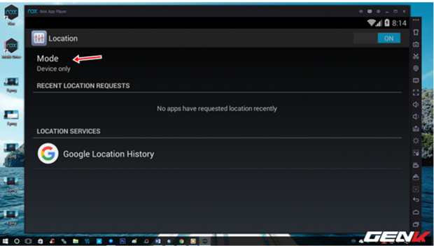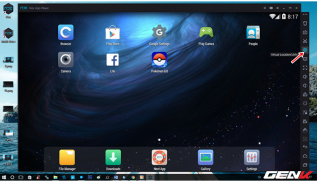 Sau khi Nox đã tải xong tất cả mọi thứ, bạn có thể thấy được giao diện hệ điều hành Android quen thuộc đã được hiển thị trên Nox. Việc tiếp theo bạn cần làm là kéo thanh thông báo từ phía trên xuống bằng cách kéo chuột, trong thanh thông báo, bạn chọn “Location”.