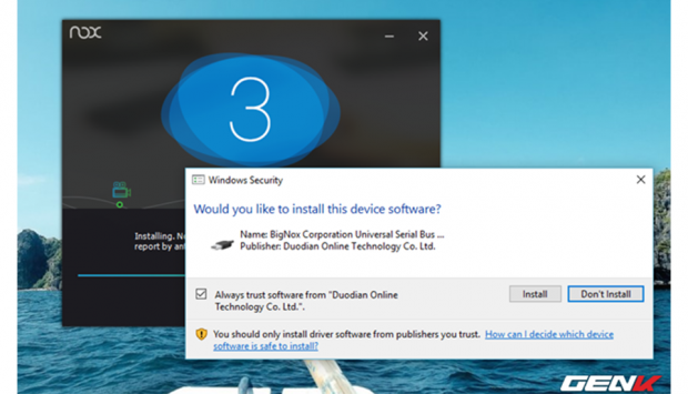 Trong quá trình cài đặt, phần mềm sẽ yêu cầu bạn cho phép cài thêm một số driver cần thiết, bạn hãy nhấn “Install” để đồng ý.