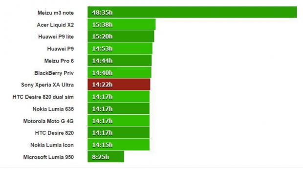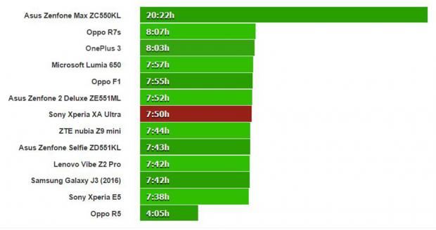 Kết quả bài kiểm tra pin Xperia XA Ultra: