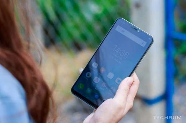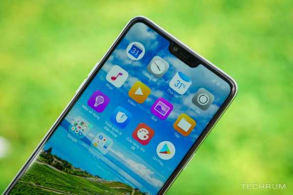 Ở mặt trước, điểm nổi bật của V9 chắc chắn phải là phần màn hình 'tai thỏ' ở phía trên, ở giữa là nơi đặt cụm camera trước với độ phân giải khủng lên đến 24MP, các cảm biến và loa thoại. Kết hợp với màn hình tỉ lệ 19:9 mang lại cho máy một mặt trước gần như hoàn hảo, trông như một smartphone cao cấp, thời thượng và hiện đại. Ngoài ra, màu sắc hiển thị trên màn hình này là rất tốt và độ sáng khá cao để bạn dễ dàng sử dụng ngoài trời.