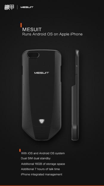 Tiếc rằng Lee không có ý định thương mại hóa sản phẩm của mình như Haimawan – nhà sản xuất Trung Quốc mới đây đã làm. Tên của chiếc ốp lưng mà Haimawan mới đưa ra là MESUIT, có chức năng giúp hệ điều hành Mesuit OS 1.0 (được tùy biến độc quyền từ Android) góp mặt trên iOS như một ứng dụng và sử dụng được dễ dàng trên các đời sản phẩm: iPhone 6, iPhone 6 Plus, iPhone 6s và iPhone 6s Plus.
