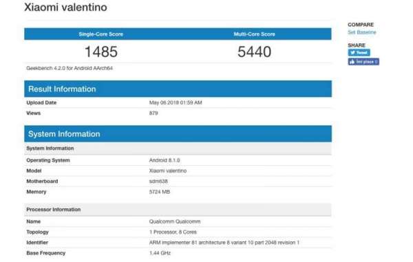 Trong khi đó, còn có một smartphone Xiaomi khác với cái tên khó hiểu “Valentino” cũng có mặt trên Geekbench, sản phẩm này dùng chip Snapdragon 638, RAM 6 GB, chạy Android 8.1.