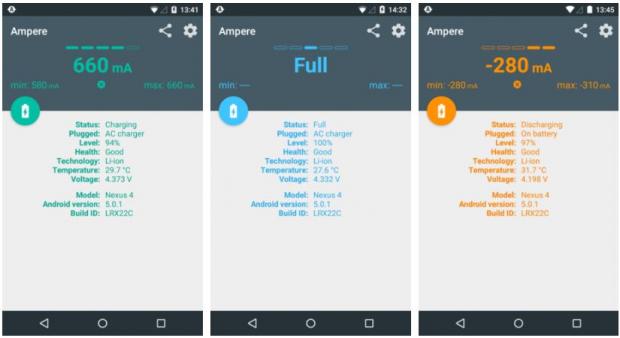 Ampere là một ứng dụng để kiểm tra và theo dõi quá trình sạc điện thoại của bạn. Ứng dụng này cung cấp thông tin là bạn đang sạc hay không sạc, đã sạc được bao nhiêu, nhiệt độ máy khi sạc, dung lượng pin còn lại và nhiều yếu tố khác. Bạn có thể dùng Ampere để kiểm tra chính xác xem quá trình sạc có đang diễn ra và diễn ra hiệu quả hay không.