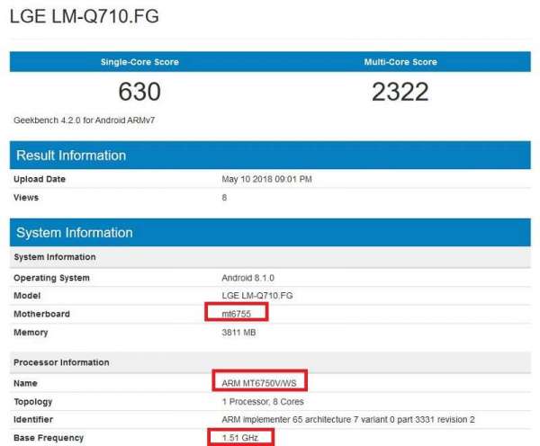 Mới đây, một người anh em khác của LG Q7 là LG Q7 Stylus (mang mã model LM-Q710) đã xuất hiện trên cơ sở dữ liệu điểm chuẩn Geekbench với bộ xử lý MediaTek MT6750/MediaTek MT6750 8 nhân, rõ ràng LG thực sự chuyển sang sử dụng bộ vi xử lý MediaTek cho dòng Q7.