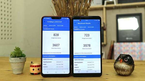 Với Antutu Benchmark, chiếc Vivo Y85 (bên trái) có điểm số cao hơn cả mẫu Vivo V7+ dùng chip Snapdragon 450