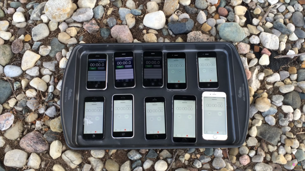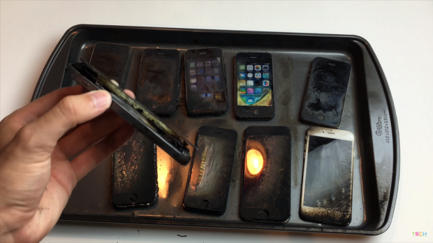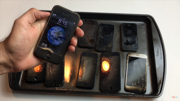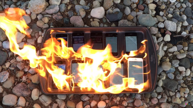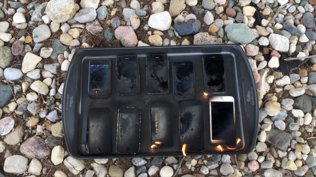Như bạn thấy, sau khi bỏ 10 chiếc iPhone bao gồm 2G, 3G, 3GS, 4, 4S, 5, 5C, 5S, 6, 6S vào trong khay và kích hoạt đồng hồ hẹn giờ trên mỗi máy, anh chàng này tưới xăng lên trên và châm lửa đốt cho đến khi nó tắt hoàn toàn. Kết quả thử nghiệm cho thấy rằng dòng sản phẩm càng cũ, dấu hiệu chống chọi càng khả quan (mặc dù phần lớn bị hỏng hoàn toàn). Dù sao đi chăng nữa thì có vẻ như Apple đã thực hiện nhiều thay đổi về mặt thiết kế bên ngoài cũng như vật liệu cấu thành sản phẩm trên các model ra mắt trong mấy năm gần đây.