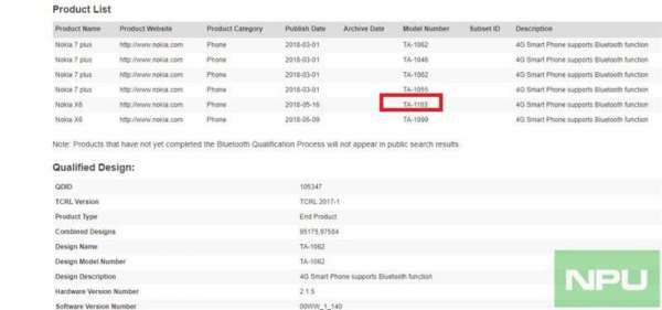 Chắc chắn nhiều fan hâm mộ Nokia đang bày tỏ mong muốn Nokia X6 được bán ra thị trường quốc tế vì máy có thiết kế đẹp, giá phải chăng. Và mới đây, một phiên bản của Nokia X6 với tên model TA-1103 đã đạt chứng nhận Bluetooth.