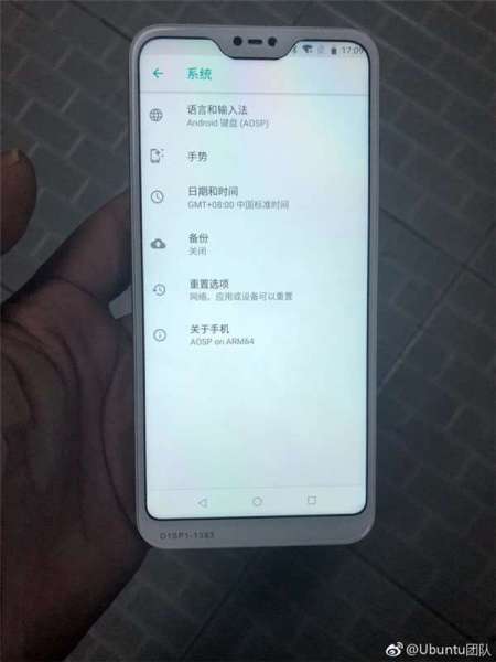 Mặt sau của máy khá giống Redmi Note 5 với thiết kế 3 phần riêng biệt, camera kép xếp dọc và có cảm biến vân tay. Có thể đây mới chỉ là nguyên mẫu (prototype) chưa phải máy hoàn thiện cuối cùng nên điện thoại vẫn đang chạy phiên bản Android gốc.