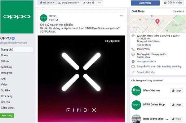 OPPO Việt Nam đăng tải thông tin về OPPO Find X