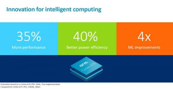 Tích hợp trí thông minh nhân tạo giúp CPU cải thiện được tốc độ gấp 4 lần và năng suất bộ nhớ đọc bộ nhớ tăng gấp đôi. Cortex A76 sẽ kết hợp với các nhân cấp thấp là Cortex A55, thay thế các nhân Cortex A75 trước đó.