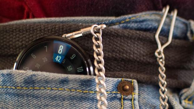 Các bạn có thể thấy thiết bị sở hữu thiết kế mặt tròn khá thu hút, cạnh phải là ba nút điều khiển vật lý, dây đeo da và vỏ hộp nhám vuông vức nhìn cũng 'tông xuyệt tông' với thiết bị.