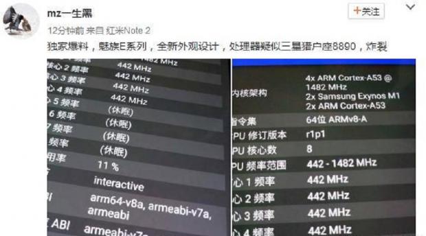 Sản phẩm mới của Meizu sẽ thuộc dòng E series, sử dụng bộ vi xử lý Exynos 8890, do chính Samsung sản xuất, dựa trên kiến trúc LITTLE, tiến trình 14nm thế hệ thứ 2, xung nhịp 2.3 GHz, hỗ trợ 4G LTE Cat 12/13.