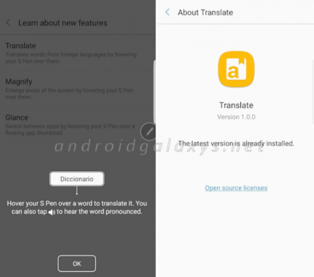 Trong đó, tính năng dễ hiểu nhất chính là Translate, cho phép người dùng sử dụng bút S-Pen để dịch nhanh từ hoặc một đoạn văn bản bất kỳ sang một ngôn ngữ nào đó đã được cài đặt trước, thông qua cách di chuyển bút S-Pen qua lại trên màn hình, gần giống với trải nghiệm khi bạn dùng bút để tra từ điển vậy. Nhiều khả năng, Samsung sẽ tận dụng dữ liệu từ Google Translate nên chắc chắn là Tiếng Việt vẫn sẽ được hỗ trợ.