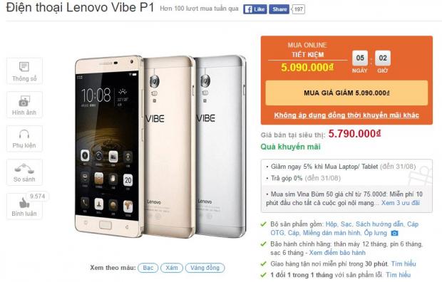 Với Vibe P1 sau khi hết thời gian trong chương trình khuyến mãi mua online giảm giá sốc thì mới đây, chương trình này tiếp tục được gia bạn thêm 6 ngày nữa. Bây giờ bạn còn thời gian tới 5 ngày để mua sản phẩm này với giá giảm từ 5.79 triệu đồng xuống còn 5.09 triệu đồng, giảm 700 ngàn đồng, chi tiết và đặt mua ngay tại đây.