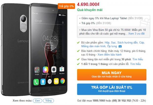 Tiếp theo là mẫu smartphone Lenovo A7010 (K4 Note), thiết bị này được giảm giá từ 4.99 triệu đồng xuống còn 4.69 triệu đồng, giảm 300 ngàn, lưu ý là máy cũng được khuyến mãi mua trả góp 0% đấy nhé. Chi tiết và đặt mua tại đây.