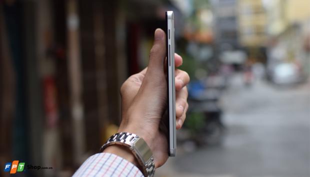 Cạnh phải của máy với 2 phím tăng/giảm âm lương và phím nguồn cũng được làm bằng kim loại, thiết kế thanh mảnh và bố trí khá dễ bấm, độ nẩy tốt.