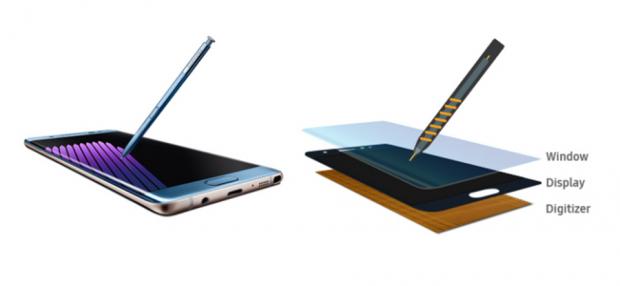 Bên trong S-Pen của Galaxy Note 7 có một cuộn cảm tương tác với tấm cảm ứng Digitizer của máy bằng công nghệ cộng hưởng điện từ (EMR - electromagnetic resonance). Digitizer sẽ nhận diện được vị trí của bút và áp lực để đưa ra những phản hồi tương ứng, loại bỏ tình trạng phụ thuộc vào tĩnh điện nên bút có thể sử dụng dưới nước, khác với 1 số cây bút Bluetooth đòi hỏi phải sạc và đi kèm pin bên trong.
