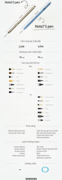 [Infographic] So sánh bút S-Pen của Samsung Galaxy Note 7 và Galaxy Note 5: