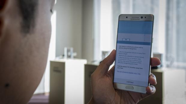Đi kèm với camera phía trước là một camera dành riêng chỉ để nhận biết các thành phần của nhãn cầu của một người. Ở đầu bên kia của cạnh máy là một cảm biến ánh sáng hồng ngoại, được sử dụng để thực hiện các công việc quét trong các tình huống ánh sáng yếu. Hai module làm việc cùng nhau để mở khóa Note 7 đơn giản bằng cách nhìn vào nó.