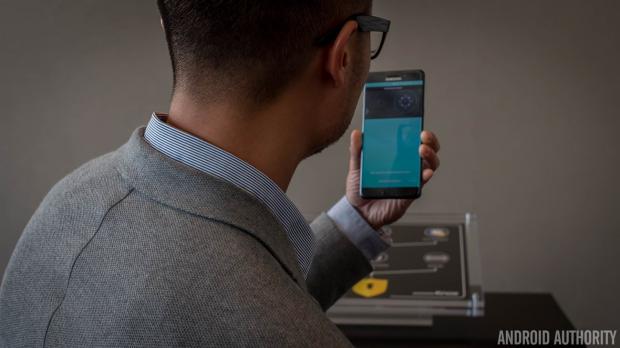 Trong quá trình quét, bạn phải tháo bỏ kính hoặc kính áp tròng, để việc thiết lập được diễn ra suôn sẻ. Sau lời nhắc nhở nhỏ đó, màn hình sẽ biến thành kính ngắm cho máy quét mống mắt để người dùng biết nơi đặt đôi mắt của họ.