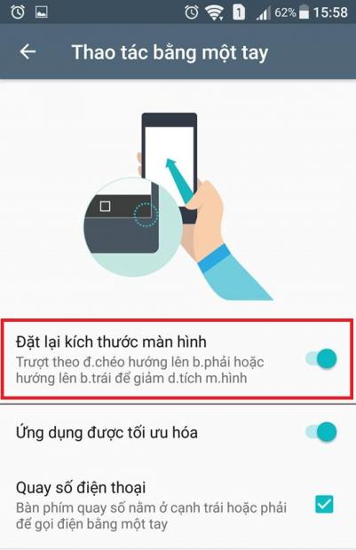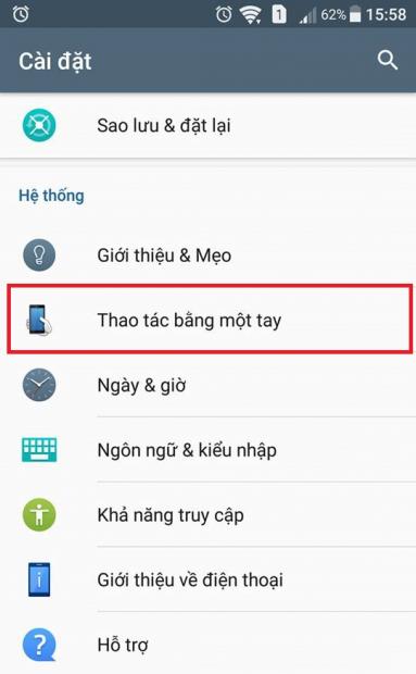 Các bạn vào Cài đặt > Thao tác bằng một tay.