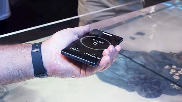 Samsung đã chính thức ra mắt siêu phẩm Galaxy Note 7 vào ngày 02.08 và ở trong sự kiện này hãng điện thoại Hàn Quốc cũng đã trình diễn khả năng chơi game tìm ngọc trong vỏ sò của thiết bị. Không giống như những thử nghiệm bình thường, lần này nhằm thể hiện khả năng chống nước và tính năng của S-Pen thì Samsung đã cho Galaxy Note 7 chơi game dưới nước.