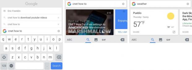 Gboard được tổng hợp rất nhiều tính năng từ các ứng dụng khác như đoán từ, tự động sửa lỗi, nhập liệu bằng thao tác cử chỉ,… Tính năng hay nhất của Gboard là khi bạn ấn vào biểu tượng Google ở trên cùng bên trái bàn phím. Từ đây, bạn có thể tìm kiếm bất kỳ thứ gì như các trang web, địa chỉ liên lạc hay thời tiết,... trên Google một cách nhanh chóng, sau đó lập tức chèn nó vào trong cửa sổ trò chuyện. Như vậy, với Gboard, bạn vừa có thể tìm kiếm bất cứ điều gì trong khi vẫn ở trong cuộc trò chuyện lại vừa có thể gửi những thông tin hữu ích cho người đang trò chuyện với mình.
