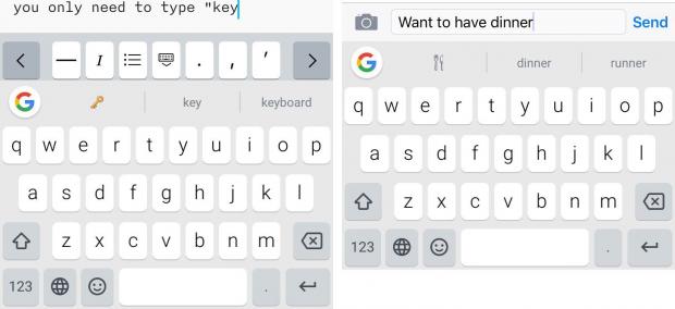Với bàn phím truyền thống của iOS, bạn có thể chọn biểu tượng cảm xúc bằng cách nhấn vào biểu tượng giống như hình quả địa cầu, sau đó trở lại với bàn phím chuẩn. Nhưng với Gboard mọi thứ sẽ đơn giản hơn nhiều, ví dụ bạn chỉ cần gõ “key” là một loạt biểu tượng cảm xúc sẽ hiện ra và tự động được điền vào văn bản.