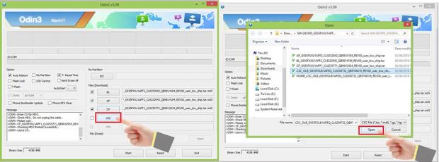 - CSC > Chọn file CSC_OLB_G935FOLB1APEQ_CL8208732_QB9748316_REV00_user_low_ship.tar Open.