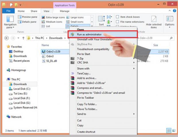 Bước 5. Click chuột phải vào phần mềm Odin3 v3.09 > Chọn run as administrator.
